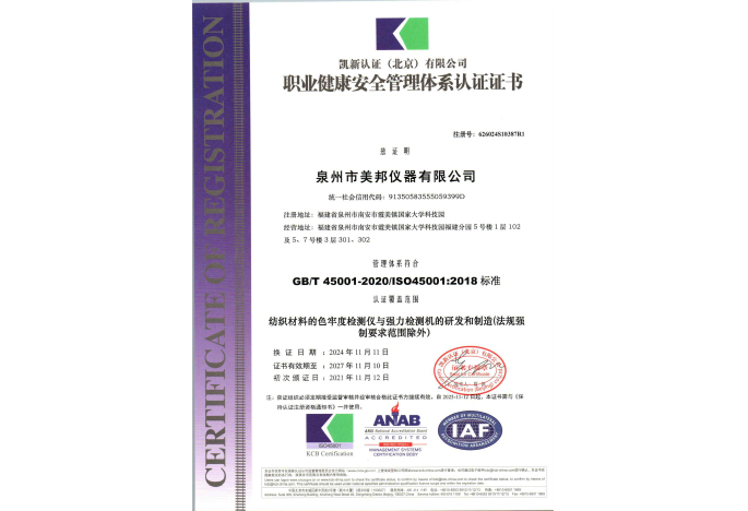 +ISO職業(yè)健康安全管理體系認(rèn)證證書