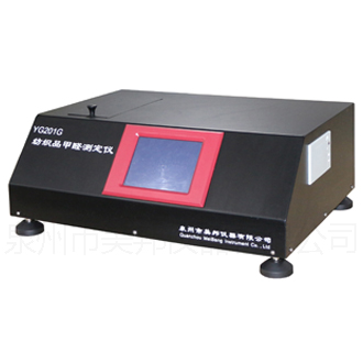 國(guó)家標(biāo)準(zhǔn)關(guān)于紡織品中甲醛含量的測(cè)定有三種方法,即GB/T2912.1-2009《紡織品甲醛的測(cè)定:游離和水解的甲醛(水萃取法)》、GB/T2912.2-2009《紡織品甲醛的測(cè)定第2部分:釋放的甲醛(蒸氣吸收法)》和GB/T2912.3-2009《紡織品甲醛的測(cè)定第3部分》。目前,在我國(guó)大多數(shù)紡織標(biāo)準(zhǔn)中,測(cè)試紡織品中甲醛含量都要求采用水萃取法,這種方法快捷方便,應(yīng)用廣泛。二種、三種方法由于受到產(chǎn)品或條件影響,使用的較少。接下來(lái)介紹我司的甲醛含量測(cè)定儀YG201E和YG201G。