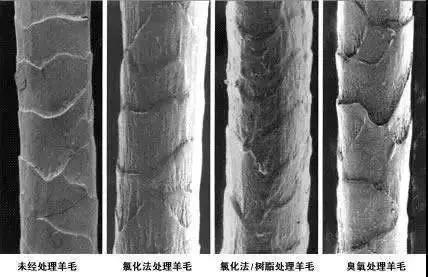 和所有的哺乳動(dòng)物的毛發(fā)一樣,羊毛的外層也被相互重疊、方向一致的毛鱗片包圍著。這些鱗片讓羊毛更容易往單一方向滑動(dòng)。