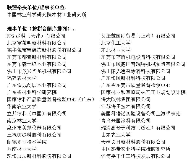 在理事長(zhǎng)單位中國(guó)林業(yè)科學(xué)研究院木材工業(yè)研究所的牽頭下,木材涂料與涂裝國(guó)家創(chuàng)新聯(lián)盟目前由37家單位組成。