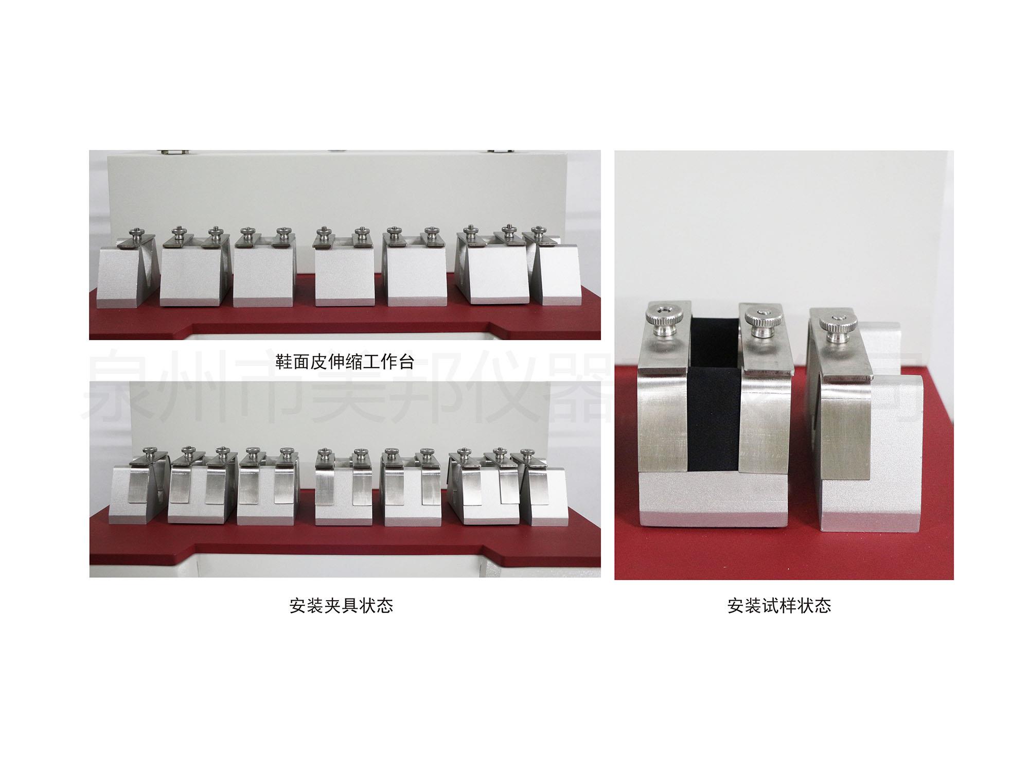 用于以往復(fù)伸縮快動(dòng)作,模擬鞋子穿著后,行走過程中鞋面受到的拉伸、擠壓、曲折的伸縮,造成鞋子材料產(chǎn)生褶痕,皺紋或受損情形,作為選用鞋面材料參考依據(jù)。