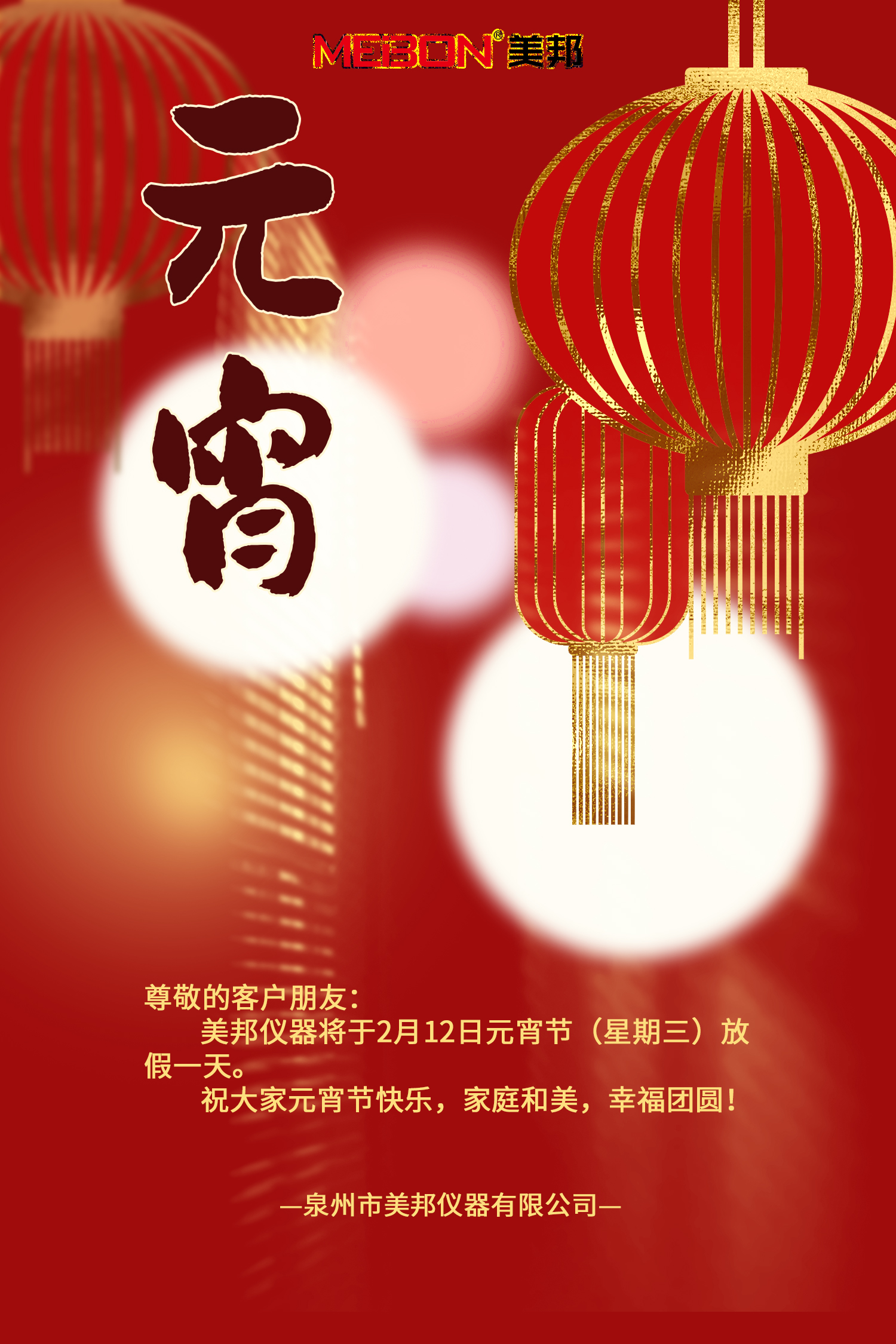 美邦儀器2025年元宵佳節(jié)放假通知