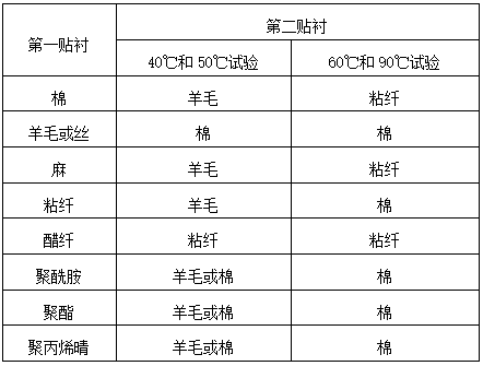 貼襯選擇:測(cè)試耐洗色牢度所用的貼襯織物,可采用單纖維貼襯或多纖維貼襯。單纖維貼襯織物應(yīng)符合GB7565-1987《紡織品色牢度試驗(yàn)綿和粘纖標(biāo)準(zhǔn)貼襯織物規(guī)格》,GB/T7568.1-2002《紡織品色牢度試驗(yàn)毛標(biāo)準(zhǔn)貼襯織物的規(guī)格》,GB/T13765-2002《亞麻和苧麻標(biāo)準(zhǔn)貼襯織物》和ISO105-F07-2001《醋纖貼襯織物規(guī)范》等標(biāo)準(zhǔn)要求:多纖維貼襯應(yīng)符合GB11404-1989《紡織品色牢度試驗(yàn)多纖維標(biāo)準(zhǔn)貼襯織物規(guī)格》標(biāo)準(zhǔn)要求。