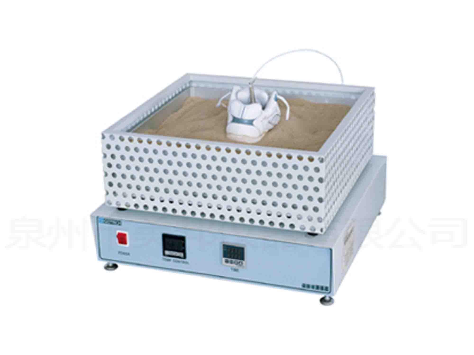 This machine is used to test the heat resistance of shoe soles. After placing the sample shoes on a hot plate at a specified temperature for a certain time, the temperature of the inner surface of the sole is checked.
