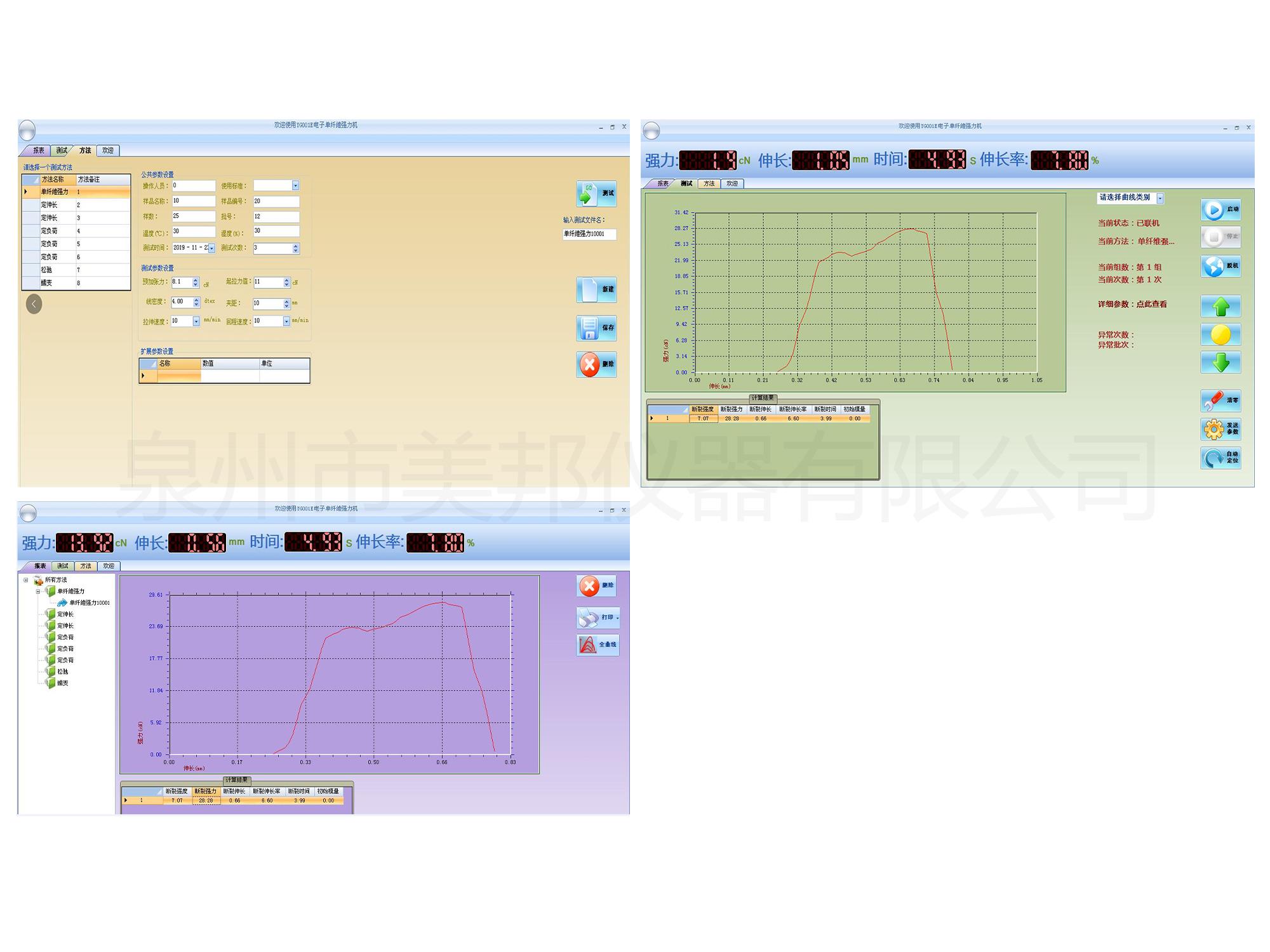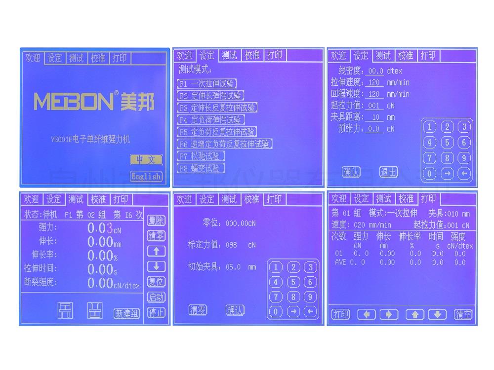用于測定各種自然纖維、化學纖維、金屬絲、頭發(fā)、碳纖維等材料的斷裂強力、斷裂伸長率。